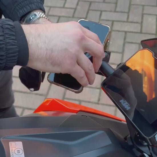 الحامل يتمتع بمظهر بسيط وأنيق، مصمم ليتكامل مع أسلوب دراجتك النارية. تلتقي الوظائف والتصميم لتجربة متفوقة.